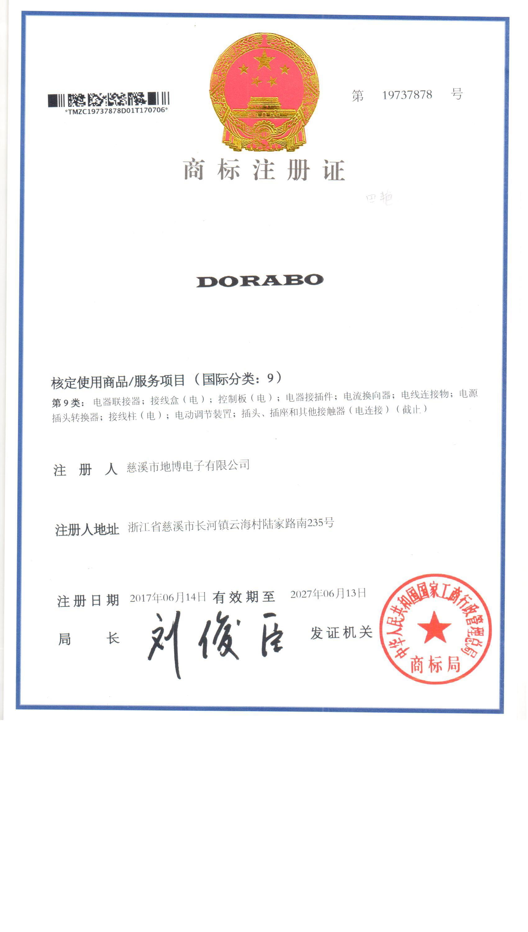 Dorabo® Trademark registration certificate-1