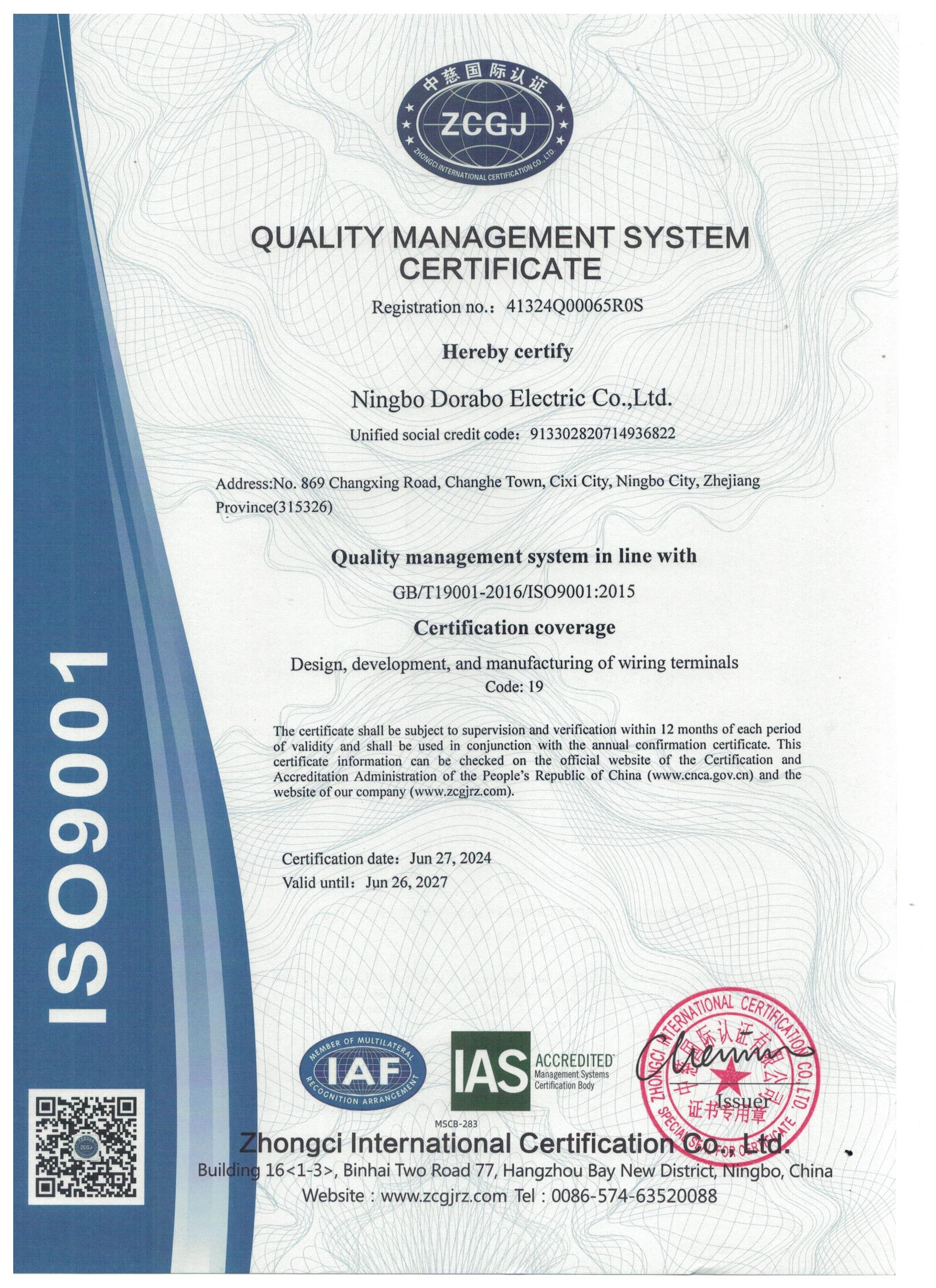 Dorabo®UL CertificateofComplianceE484896